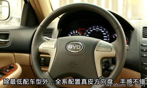 進(jìn)入車內(nèi),車主對方向盤的材料感到滿意“真皮,握上去感覺不錯,”,在比亞迪F6的4款車型中除最低配車型以外,其余均配有真皮方向盤。 但車主對內(nèi)飾的整體評價并不很好。