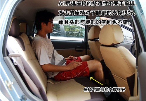 A1的乘坐空間表現(xiàn)在同級車中屬于不錯的了:身高一米八五的人坐入進(jìn)去,頭部與腿部都能保證有一定活動空間,并沒有十分壓抑的感覺。而且座椅很舒適,其腰部包裹與腿部支撐都很值得稱贊,頗有運動感。