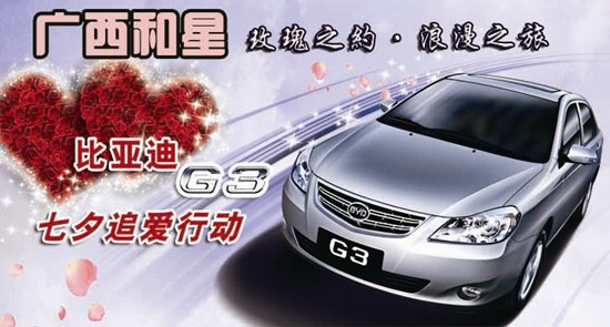 七夕將至,您想好怎么過了么?是陪您的愛人共敬燭光晚餐?還是去商場(chǎng)瘋狂shopping?還是正在冥思苦想呢?放下腦中的一切想法!來(lái)參加和星比亞迪“玫瑰之約,浪漫之旅”G3車主挑戰(zhàn)賽吧!無(wú)論您是單身車主,還是攜伴侶參加,都有驚喜等著您!