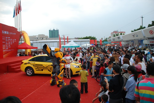 10月16、17兩日,在云南玉溪市舉行的2010(第二屆)西部名城汽車巡展上,上海通用雪佛蘭的參展經(jīng)銷商別出心裁的將“大黃蜂”帶到了現(xiàn)場(chǎng),眾“剛絲”紛紛捧場(chǎng),現(xiàn)場(chǎng)引發(fā)的尖叫不絕入耳。