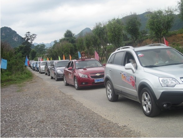 當(dāng)天早上,車隊(duì)在廣西弘通別克4S店集中,隨著六發(fā)禮炮聲響起,領(lǐng)航車緩緩開出大門,緊隨其后的自駕車隊(duì)伍浩浩蕩蕩地行使在安吉大道上,格外引人注目。一路上,別克、歐寶、雪佛蘭的車友們通過(guò)對(duì)講機(jī)積極互動(dòng),對(duì)答歌唱,不時(shí)傳出陣陣笑聲。