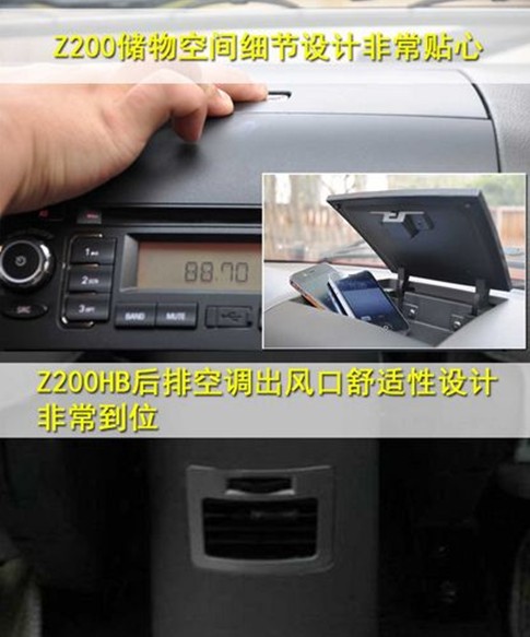 Z200在人性化設(shè)置上更勝一籌,如同級別車型很難見到的前后中央扶手、7英寸LCD顯示屏和一些非常具有實用性的儲物空間設(shè)計等。不過,在面對同級別車型往往只有中控臺出風(fēng)口,而造成前后排溫度不均,Z200HB的后排空調(diào)出風(fēng)口設(shè)計可以說非常貼心實用。