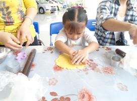活動開始,現(xiàn)場火爆 小朋友認真做餅干