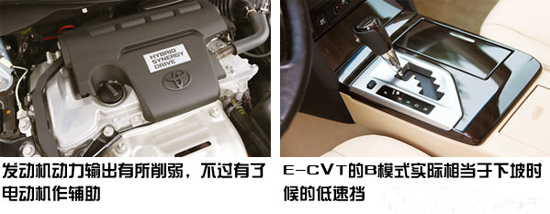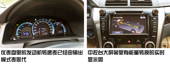 在尊瑞上,一些設(shè)計的改變其實是和第三代普銳斯一脈相承的,比如新凱美瑞混動版也更換了排量更大的發(fā)動機,新機器4AR-FXE相比老車型排量提升了0.1升,不過扭矩卻增加了近20%。新發(fā)動機實際上是普通版5AR-FE的改進機型,排量還是2.5升,不過采用了混合動力車常用的阿特金森循環(huán),與之前的奧托循環(huán)相比更注重對進排氣門的延遲控制,同時也降低了燃燒溫度,以此達到降低油耗的目的。這臺汽油機的最大功率為118kW,最大扭矩也只有213Nm,數(shù)據(jù)都不及原型機。但前提條件是尊瑞還有一臺電動機,其功率和扭矩兩項數(shù)據(jù)分別為105kW和270Nm,雖然不能把發(fā)動機和電動機的數(shù)據(jù)進行疊加,但作為輔助動力,電動機在任何時候的介入都顯得非常有意義。
