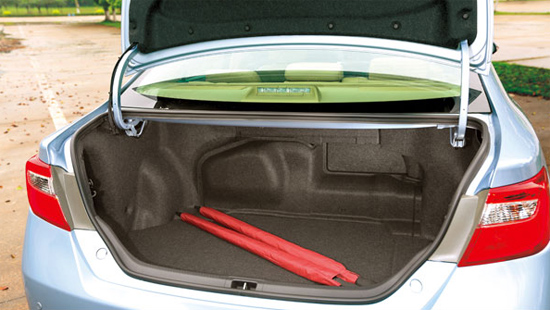 由于增加了電池組和電動機,這輛凱美瑞混動車的體重也是水漲船高,比普通版車型增重75kg,但相比上一代卻輕了足足30kg,技術(shù)的進步甚至讓我們在后備箱底部還發(fā)現(xiàn)了全尺寸備胎。由于車頭和車尾都有了“配重”,尊瑞開起來自然要比普通凱美瑞更沉穩(wěn)。懸架彈跳得更加柔順,行使中的噪音也控制得更好,由于油門的響應(yīng)更直接,因此在超車時信心更充足了。不過因為這輛車以節(jié)省燃料和減排為目的,那么實際上開車時的心態(tài)也悄悄發(fā)生了變化,相比起來我更愿意踩剎車為電池充電。