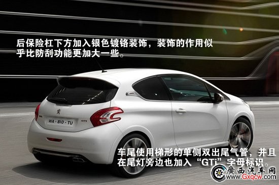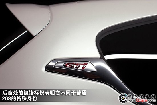 車身側(cè)面,后窗處的鍍鉻標(biāo)識表明它不同于普通208的特殊身份。而車尾方面變化較多,保險杠下方加入銀色鍍鉻裝飾,裝飾的作用似乎比防刮功能更加大一些。車尾使用梯形的單側(cè)雙出尾氣管,并且在尾燈旁邊也加入“GTi”字母標(biāo)識。