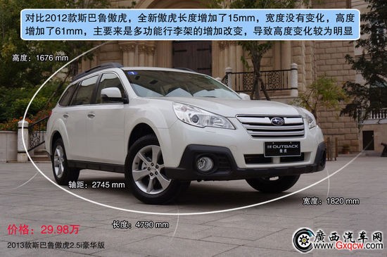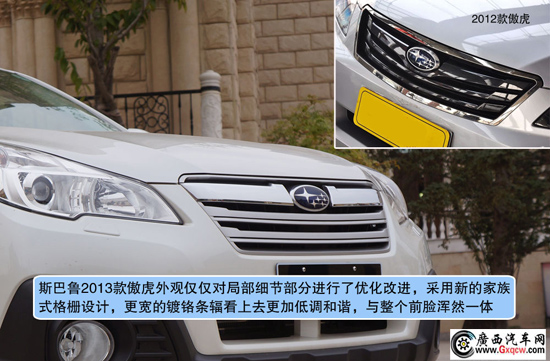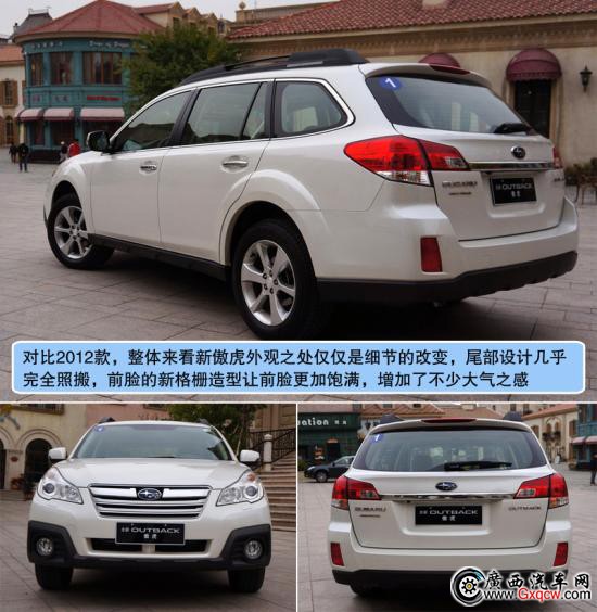 2013款斯巴魯傲虎2.5L豪華版——外觀:此次的全新傲虎,雖然在外觀上僅僅是微調(diào),但所帶來的效果還是比較直接,大氣飽滿孔武有力是帶給我們最直接的視覺反饋。