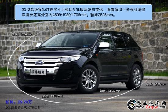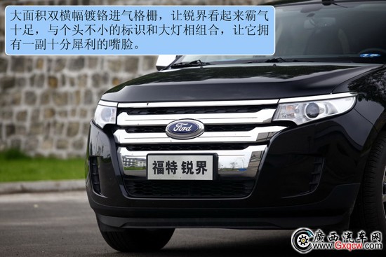 2012款福特銳界2.0T精銳版——外觀:全新的福特銳界在原有3.5 升V6 車型基礎(chǔ)上增加了小排量的2.0 GTDi 車型,為喜歡銳界這款美國味十足的SUV 的消費者提供了更寬泛的選擇余地,外觀依舊延續(xù)了美式SUV的飽滿與霸氣十足,特別是前臉設(shè)計虎虎生威。
