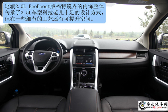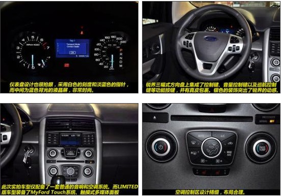 2012款福特銳界2.0T精銳版——中控:低配的2.0T銳界在配置上要寒酸很多,除了沒有大屏幕顯示屏外,與高配相比,還少了SONY的音響套件和電子液晶儀表盤,同時沒有全景天窗,不過整體精細(xì)的做工還是傳承了下來,與高配價格相差6萬多左右,沒有上述的一切應(yīng)該可以忍了。