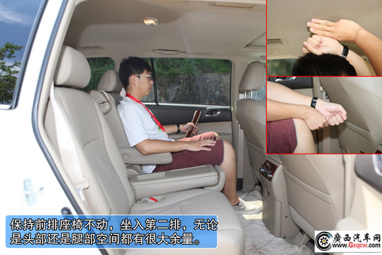 2012款豐田漢蘭達(dá)2.7L兩驅(qū)7座豪華版——空間:內(nèi)部空間就不多提了,三款車型幾乎都十分充裕,而座椅的靈活實(shí)用性是漢蘭達(dá)的一個最大賣點(diǎn),采取了上面兩款車型沒有的7座設(shè)計(jì),尤其在第二排和第三排,在同級對手中優(yōu)勢相當(dāng)明顯,甚至可以媲美很多商務(wù)MPV車型。保持第一排座椅不動,來到后排,無論是第二排還是第三排空間均很充裕。