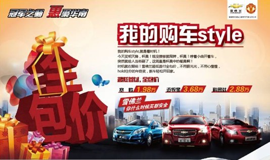 今年上半年,雪佛蘭借勢(shì)第一季度銷量位列同級(jí)之首,推出冠軍系列車型。時(shí)值年底,相關(guān)消息透露,雪佛蘭即將新推由B級(jí)新貴邁銳寶、暢銷車典范科魯茲和最受歡迎小車新賽歐主打的2013冠軍系列車型,并將分別以3.68萬(wàn)、2.88、1.98萬(wàn)“車價(jià)+買車購(gòu)置稅+保險(xiǎn)費(fèi)+上牌費(fèi)”的超低首付全包價(jià)回饋廣大華南消費(fèi)者。