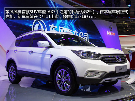 在本屆北京車展中,東風風神發(fā)布了全新SUV車型—AX7,新車就是之前曝光內部代號為G29車型。在外形設計上AX7并不遜于合資品牌車型,全新的家族前臉也將運用到未來的東風車型上。AX7的競爭對手鎖定在哈弗H6、奔騰X80等車型上,新車預計今年11月上市,預計售價13-18萬元......