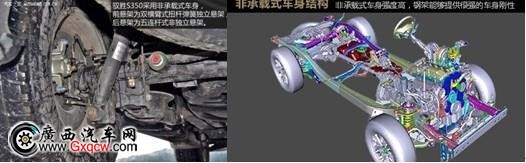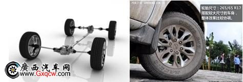 非承載式車身,專業(yè)越野底盤,前懸架為雙橫臂式扭桿彈簧獨(dú)立懸架,后懸架為五連桿式非獨(dú)立懸架,配合一套分時(shí)四驅(qū)系統(tǒng),有著不錯(cuò)的通過性能.采購美國博格華納的四驅(qū)分動(dòng)器,實(shí)現(xiàn)與**四驅(qū)技術(shù)同步。新馭勝S350AT車型的驅(qū)動(dòng)模式分為后輪驅(qū)動(dòng)、智能四驅(qū)模式。適時(shí)智能四驅(qū)模式結(jié)構(gòu)簡單,穩(wěn)定性高,堅(jiān)固耐用。陡坡、泥濘或者雪地路面都可輕松應(yīng)對(duì),既能保證車輛的動(dòng)力性和通過性,又能兼顧燃油經(jīng)濟(jì)性。