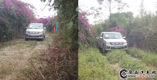 試駕開始了,我們的皮卡跑在開滿路旁的紅花的路上,可謂是“萬(wàn)花叢中過(guò),片葉不沾身”
