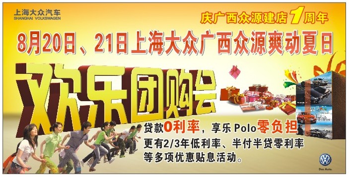 慶上海大眾廣西眾源建店一周年!8月20—21日,廣西眾源特別開展“上海大眾廣西眾源爽動夏日歡樂團購會”活動,好友介紹購車成功更有三重豪禮相送!