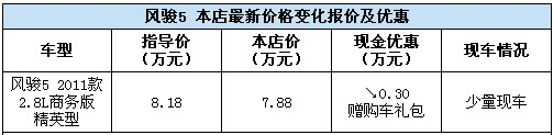 為了感謝廣大車友一直以來(lái)對(duì)廣西長(zhǎng)道的支持,我公司特開(kāi)展風(fēng)駿皮卡特價(jià)周活動(dòng),廣西長(zhǎng)道店內(nèi)風(fēng)駿5優(yōu)惠3000元再送豪華加裝禮包,少量現(xiàn)車,感興趣的朋友可以到店咨詢購(gòu)買!緩V西長(zhǎng)道:安吉4S店 0771-2330301;白沙4S店 0771-5780390;安吉直營(yíng)店 0771-3922501】
