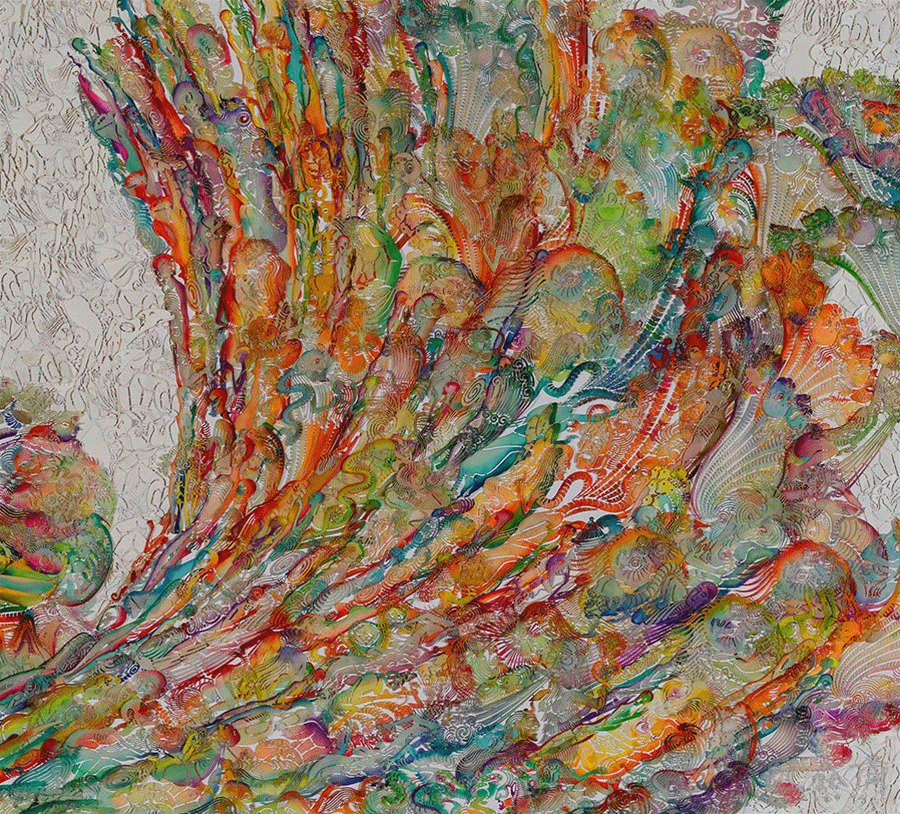 楊鑫的工作室如同生物科學(xué)的培育室,她透過(guò)光學(xué)顯微鏡細(xì)察微觀生物的結(jié)構(gòu),將細(xì)小的微觀世界用疊加、克隆的方式,借助藝術(shù)表達(dá),引導(dǎo)觀眾察覺(jué)到生活中最幽微的生命之理。