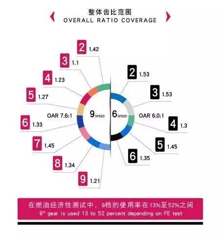 同時,多檔位的設(shè)計實現(xiàn)了相比于6速變速箱更寬泛的齒比范圍,達(dá)到了7.61。它可以使發(fā)動機有更多的時間在*高效率的運轉(zhuǎn)區(qū)間工作,并且在80km/h左右就可以升入9檔,從而提升燃油經(jīng)濟性。