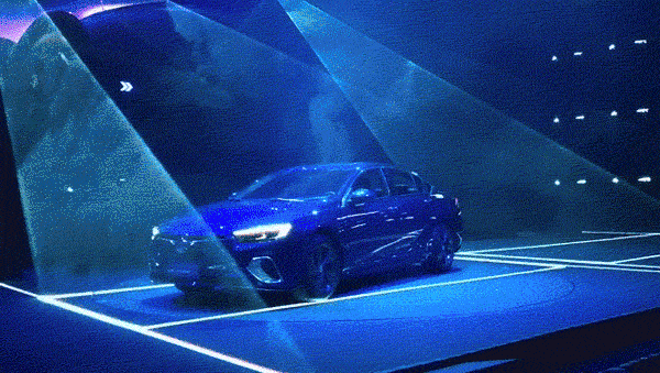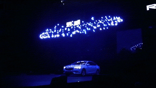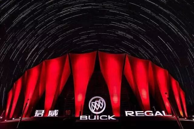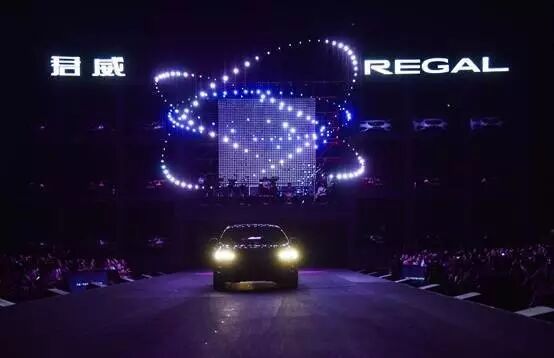 紅色大幕驟然拉起,由18輛全新一代別克君威、36盞矩陣大燈組成的燈光陣,在此刻同時亮起!