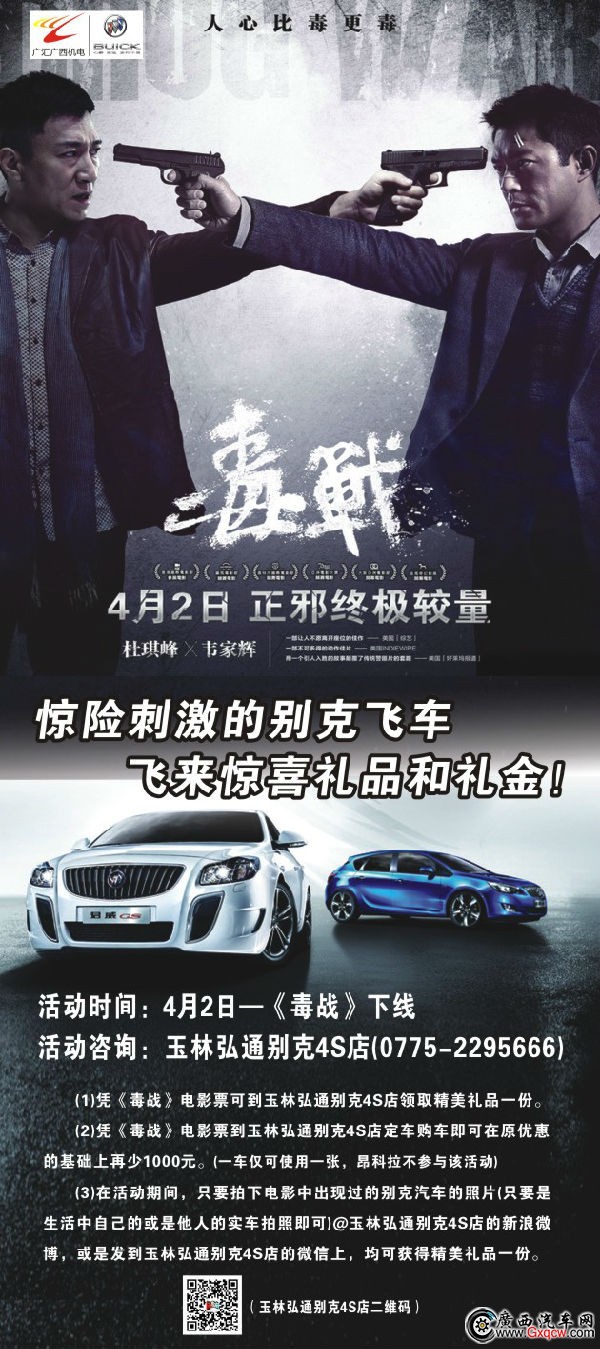 (1)憑《毒戰(zhàn)》電影票可到玉林弘通別克4S店領(lǐng)取精美禮品一份。