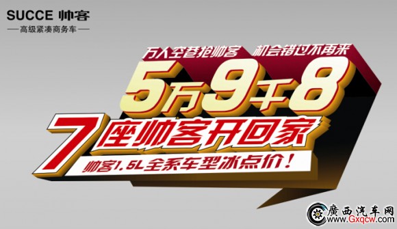 你還在為錯過上個月*優(yōu)惠價格遺憾嗎,即日至5月31日,帶上您的家人到廣西鑫瑞騏試駕,即可享受帥客直降8000元的優(yōu)惠,5.98萬起帥客開回家。