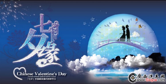 七夕今宵看碧霄,牛郎織女渡鵲橋。