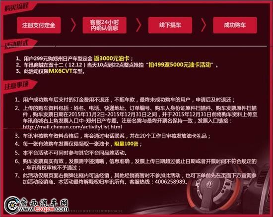 真心實(shí)惠!12月12-13日,廣西鑫瑞騏雙十二團(tuán)購(gòu)會(huì),年終購(gòu)車(chē)盛宴,*后一次底價(jià)狂歡,購(gòu)車(chē)2萬(wàn)元綜合優(yōu)惠,投保享8.5折,油卡瘋狂送!雙12當(dāng)天5000元油卡搶先送,僅限100臺(tái),半年不為加油煩 咨詢(xún)熱線(xiàn):400-818-4265、4008972476。延龍店:興寧區(qū)秀廂大道199號(hào)(延龍車(chē)城內(nèi)); 安吉店:安吉路41號(hào)安吉汽車(chē)城內(nèi)A區(qū)C棟16-17號(hào)。廣西鑫瑞騏白沙店即將入駐,屆時(shí)歡迎各位朋友蒞臨!白沙新店地址:南寧市江南區(qū)亭江路59號(hào).