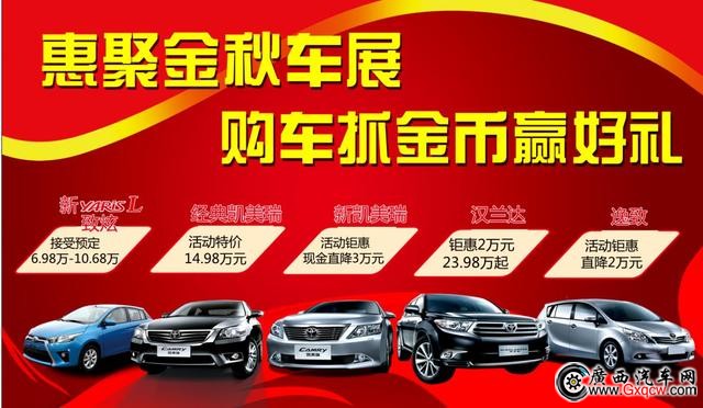 還在等車展?你還在為了等車展價格而對著自己心愛的車型望眼欲穿嗎?你還在為了車展擁擠的人流而苦惱不已嗎?廣汽豐田廣緣高新區(qū)店放"價"啦!為更好的服務(wù)廣大新老客戶,提前放出車展價格,****,跌破低價,讓客戶在車展前就能以車展價喜購愛車。你還在等什么呢?買車不用等車展,廣汽豐田廣緣高新區(qū)店讓您提前享車展優(yōu)惠政策!