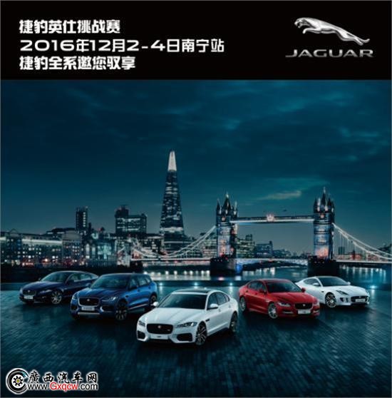 八十多年來,捷豹以誘人設計、卓越性能和精湛工藝獨步業(yè)界,現(xiàn)在,更多捷豹品牌擁躉將有機會與捷豹品牌所帶來的英倫風范零距離接觸,盡享優(yōu)雅與激情的碰撞。2016年12月4日,由廣西長久世達舉辦的2016捷豹英仕挑戰(zhàn)賽全國巡回試駕活動將在南寧三源色大學城試駕基地馭速啟程,快來與您夢寐以求的捷豹全系車型親密接觸吧!